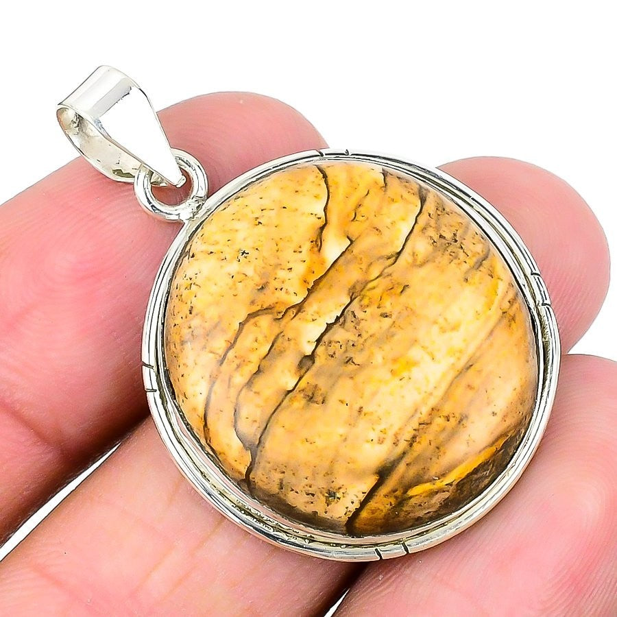 Picture Jasper Gemstone Solid Sterling Silver Best Friend Gift Pendant Jewelry