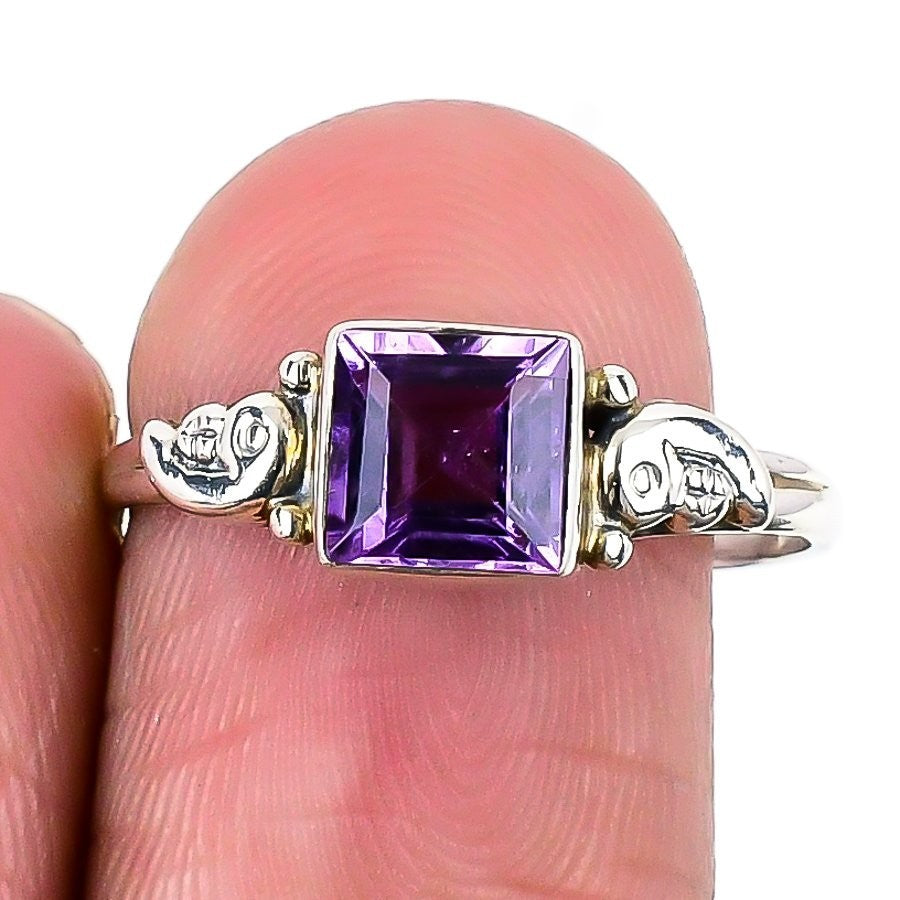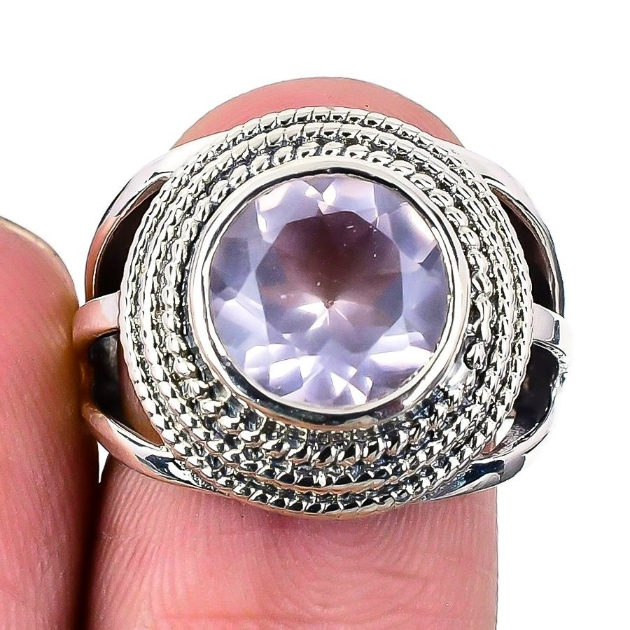 February Birth Pink Amethyst Gemstone 925 Silver Statement Trendy Ring Size 8