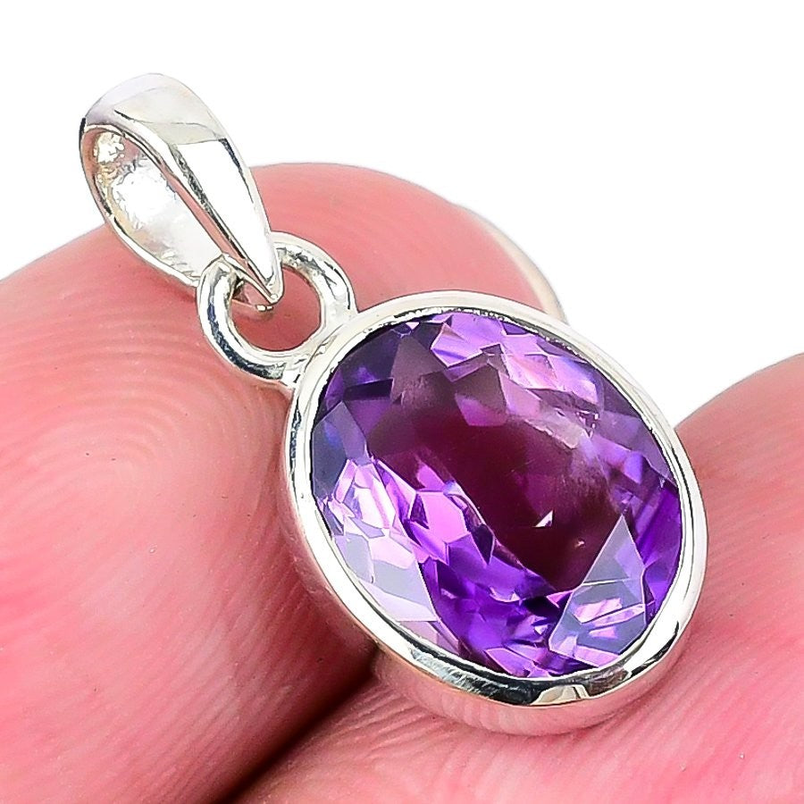 February Pink Amethyst Stone Trendy Sister Pendant Jewelry Solid Sterling Silver