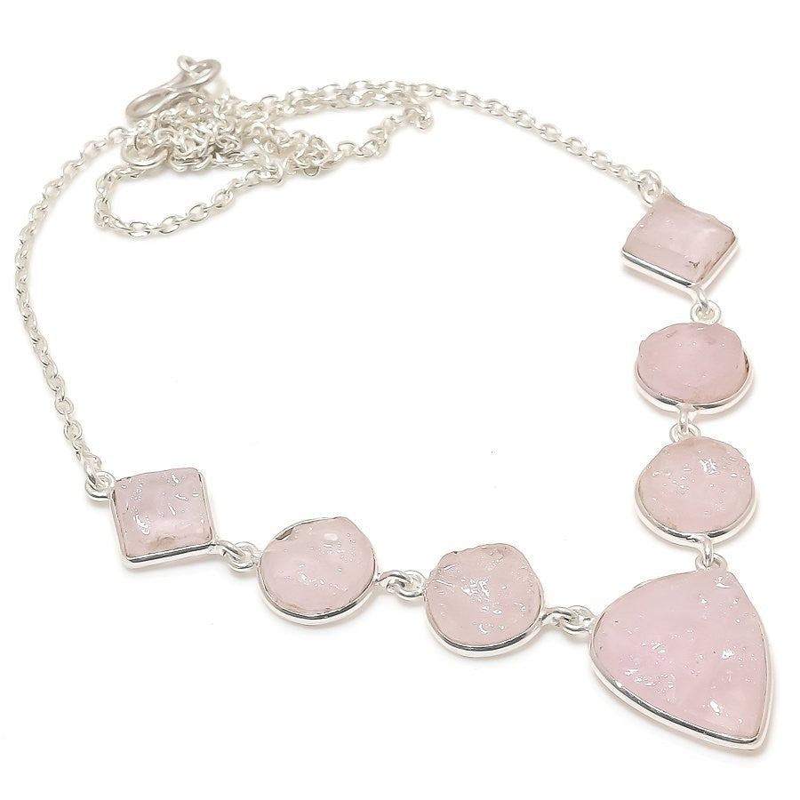 Friendship Day Deal Natural Rose Quartz Mother Wedding Chain Necklace 925 Silver