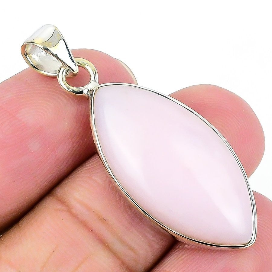 Pink Opal Gemstone Wedding Artisan Engagement Boho Pendant Solid Sterling Silver