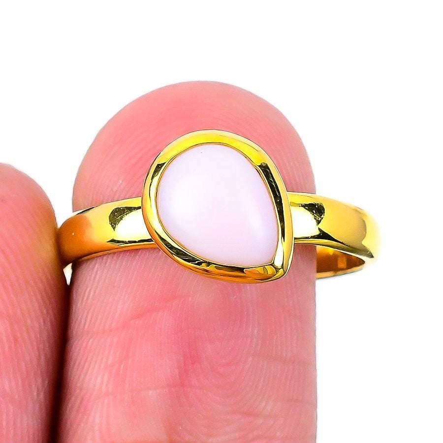 Pink Opal Stone 925 Sterling Silver Statement Friend Gift Ring Jewelry Size 9.5