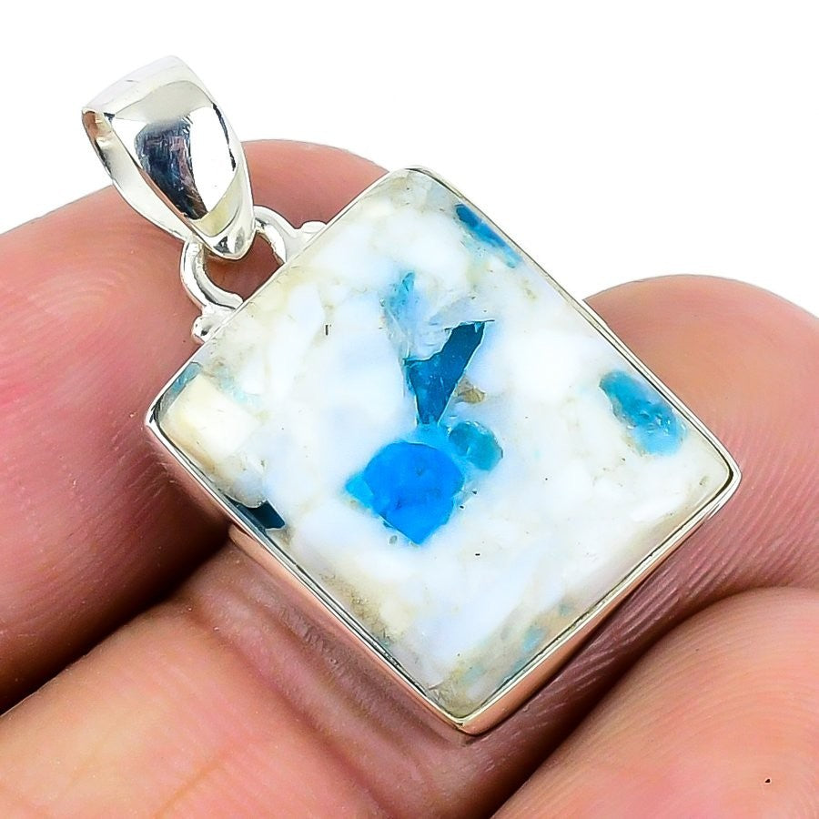 Neon Blue Apatite Gemstone Solid Silver Throat Chakra Trendy New Pendant Jewelry