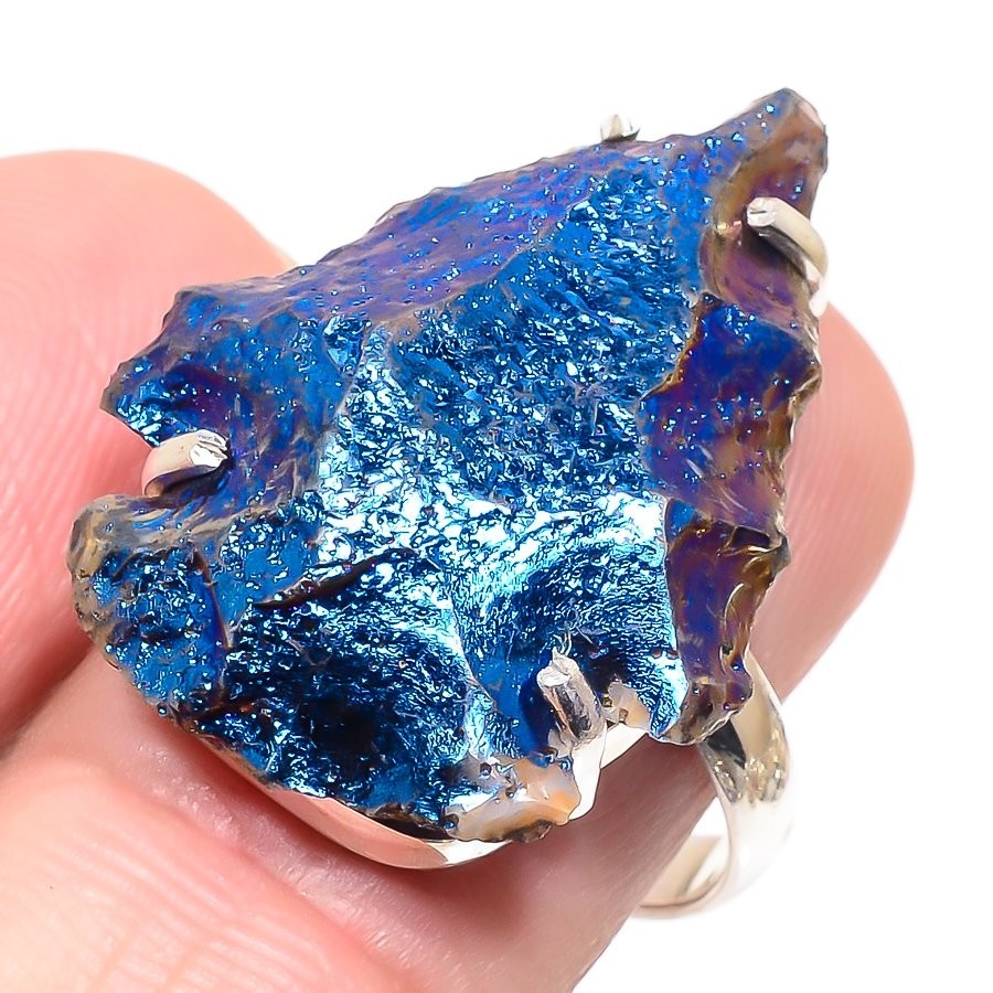 Peacock Aura Stone Engagement Daughter Boho Cluster Ring Size 9 Sterling Silver
