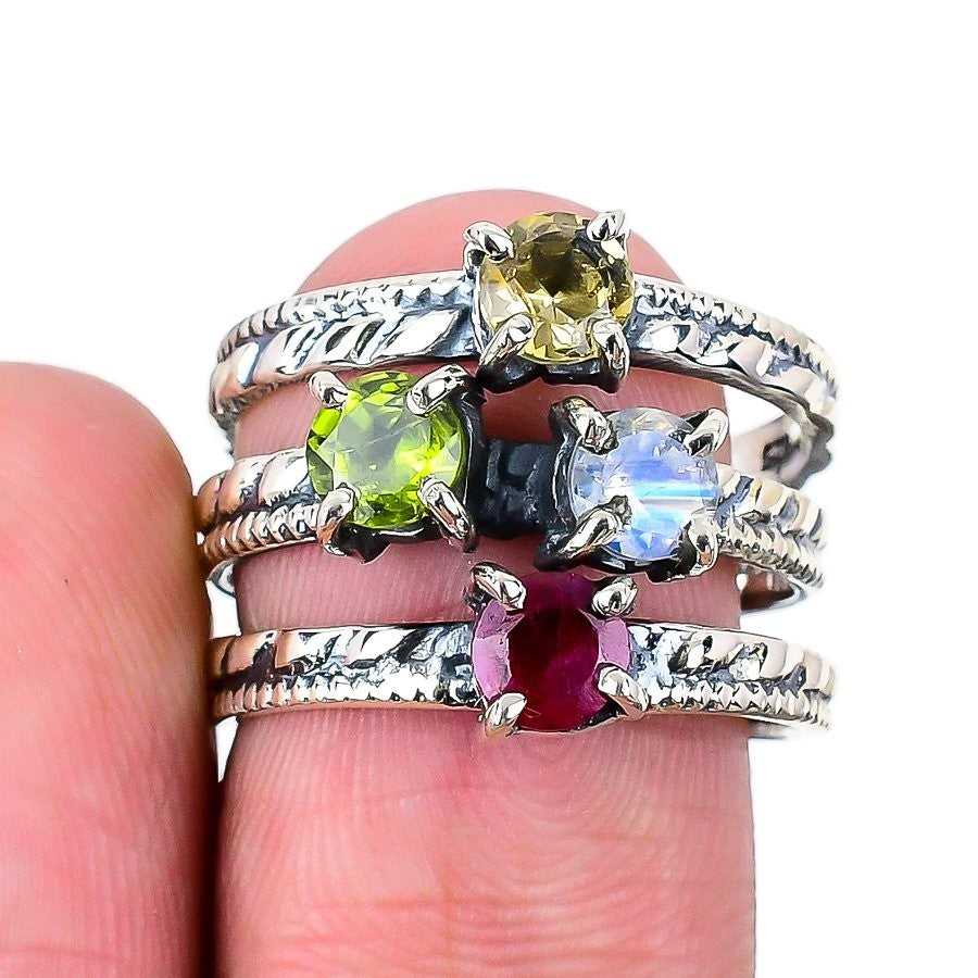 Natural Peridot Solid Silver Statement Sisters Gift Artisan Ring Jewelry US 6.5