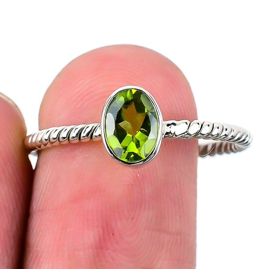 Peridot Gemstone Sterling Silver Mother Statement Birthday Ring Jewelry Size 10