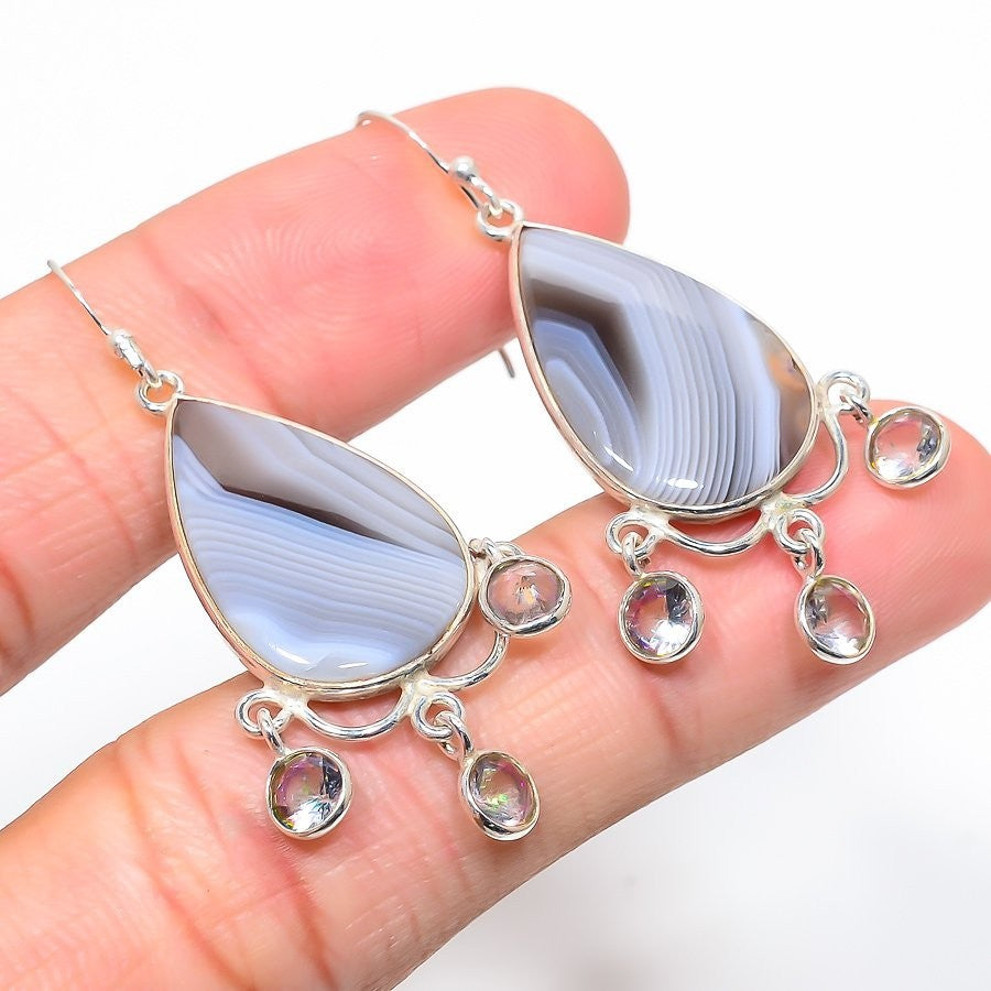 Lace Agate Gemstone 925 Sterling Silver Boho Dangle Drop Sister Earrings Jewelry