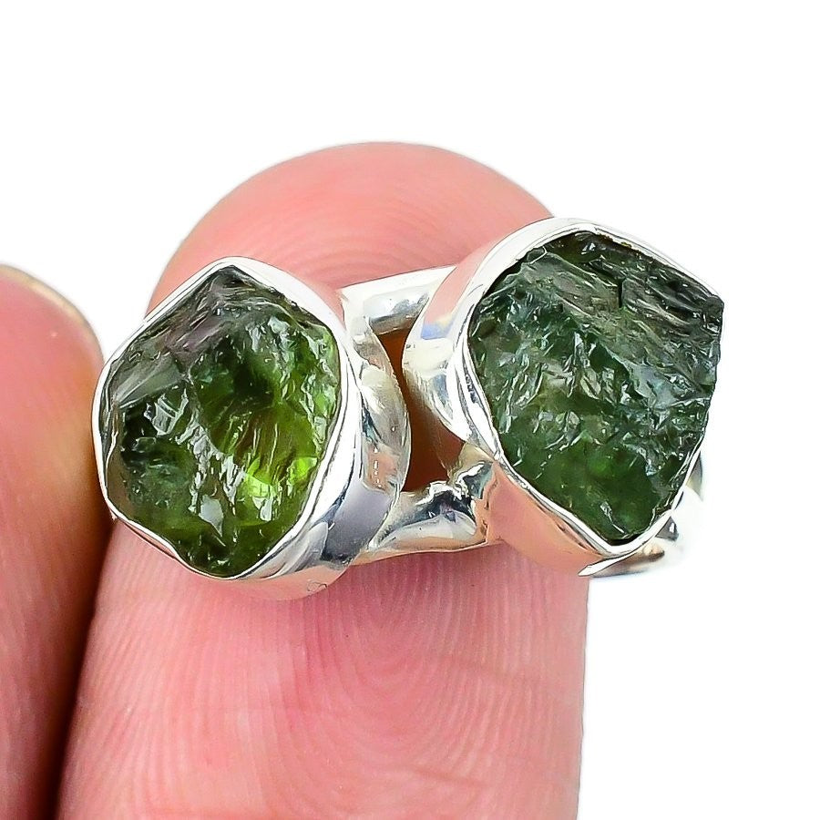 Natural Moldavite Statement Anniversary Ring Jewelry 925 Sterling Silver US 8