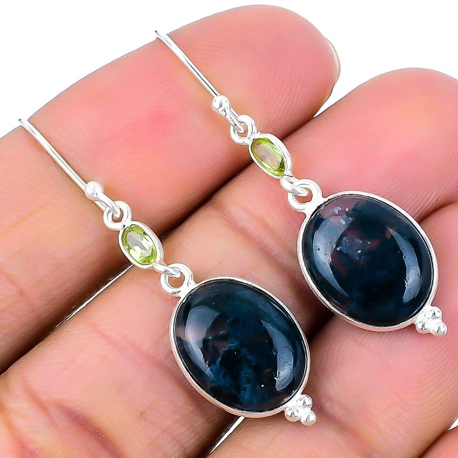 Indian Moss Agate Gemstone 925 Sterling Silver Dangling Engagement Hook Earrings