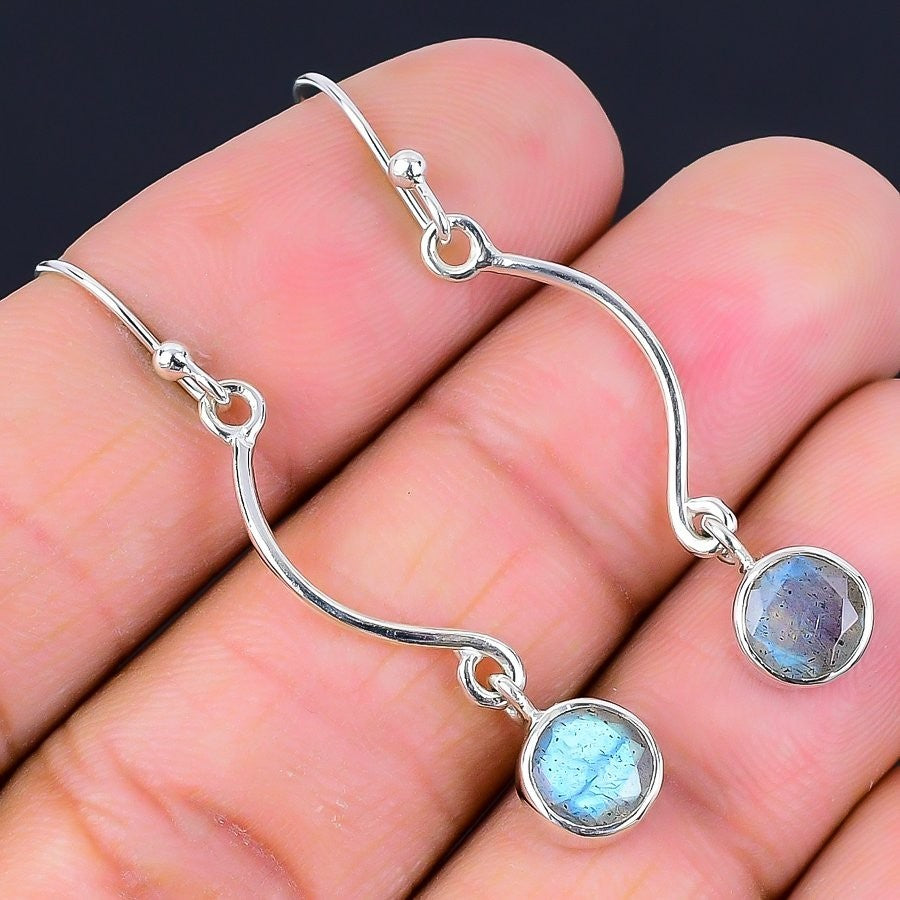 Labradorite Gemstone Engagement Hook Dangle Drop Earrings Jewelry Solid Silver