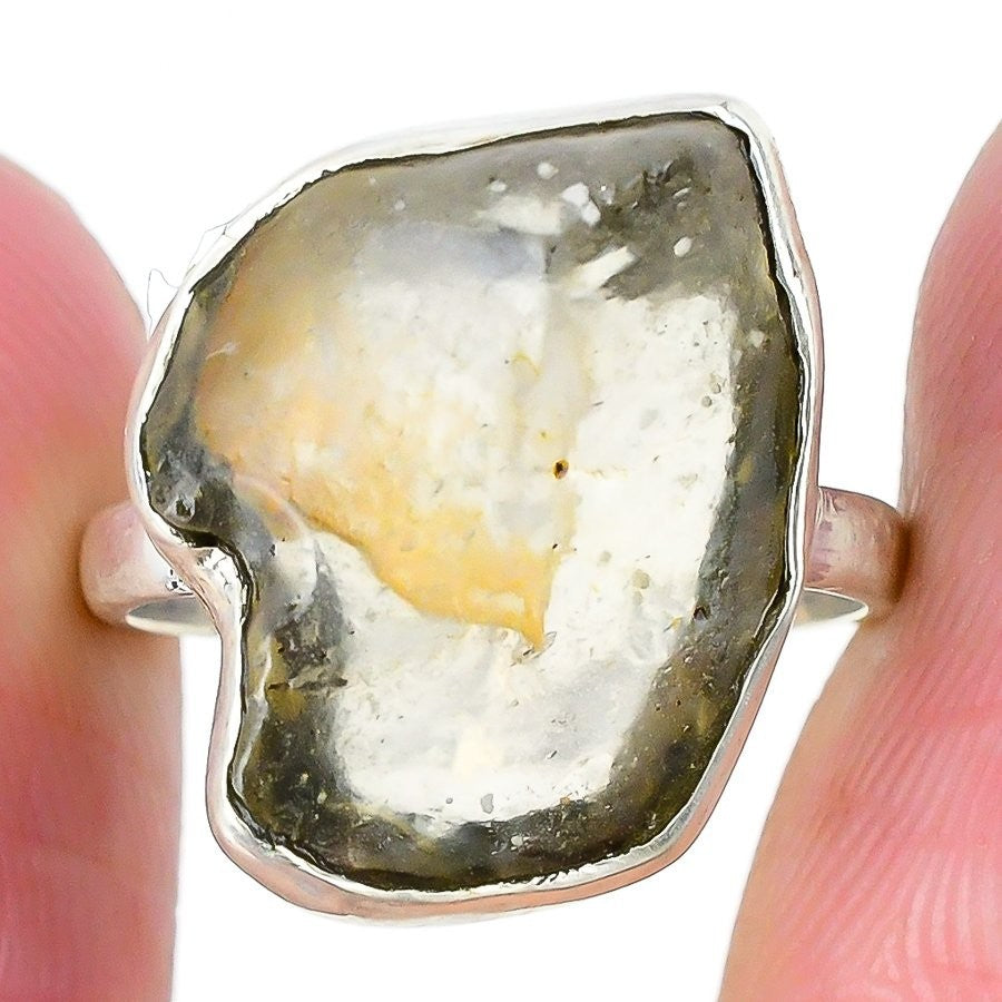 Natural Libyan Glass Solid Silver Mother Statement Engagement Ring Jewelry US 8