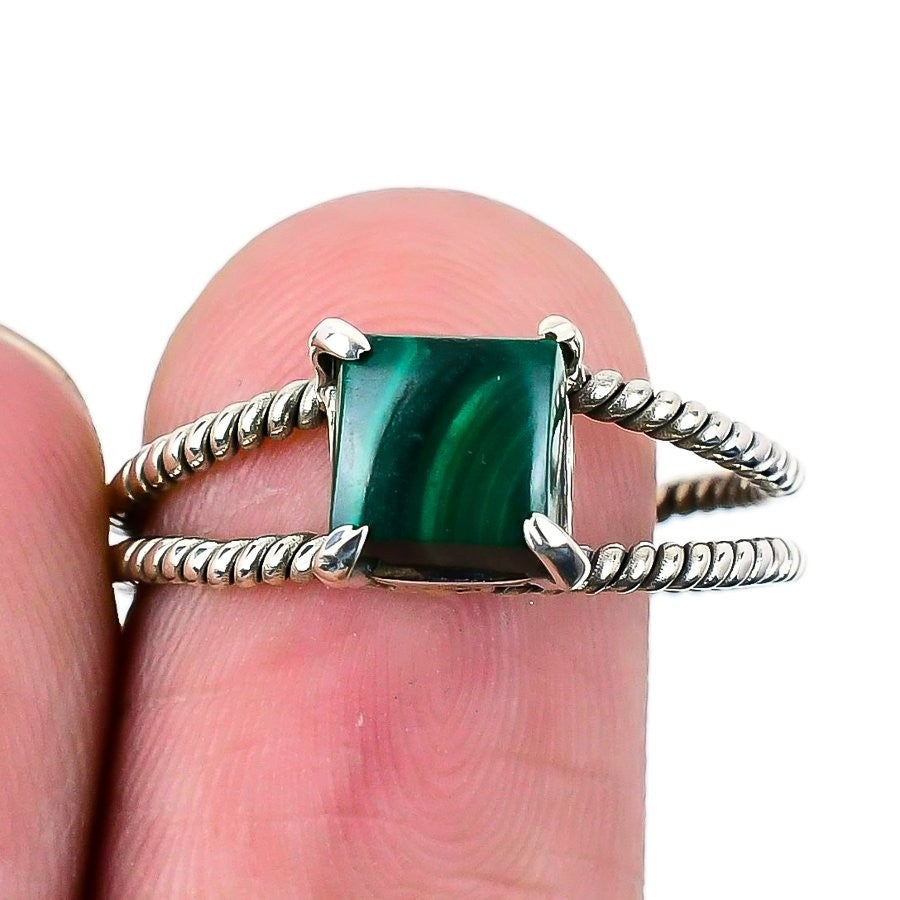 Malachite Stone Sterling Silver Unique Statement Wedding Ring Jewelry Size 9.5