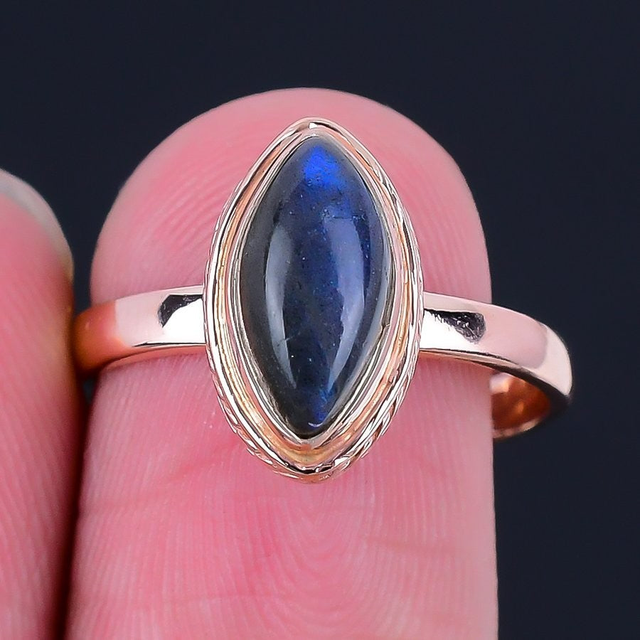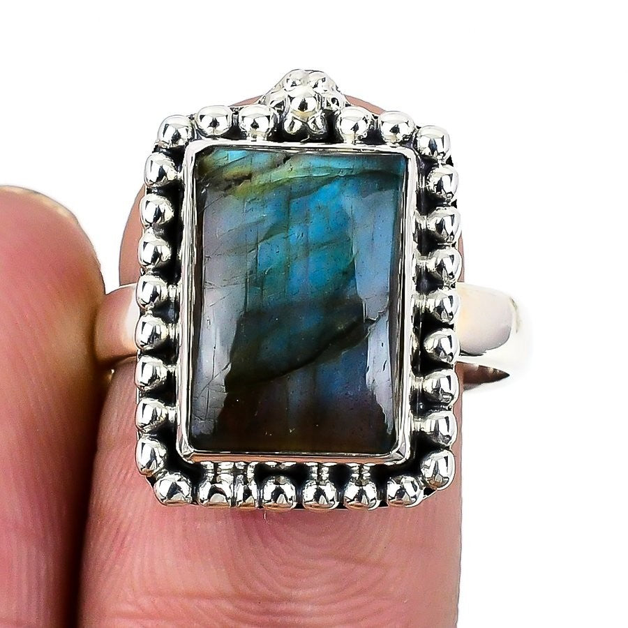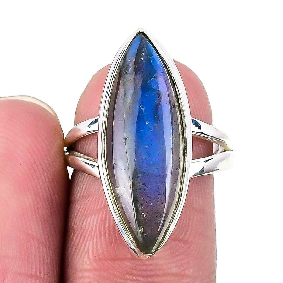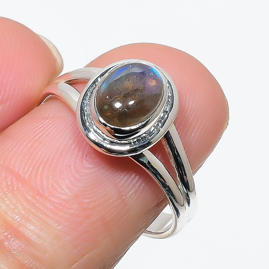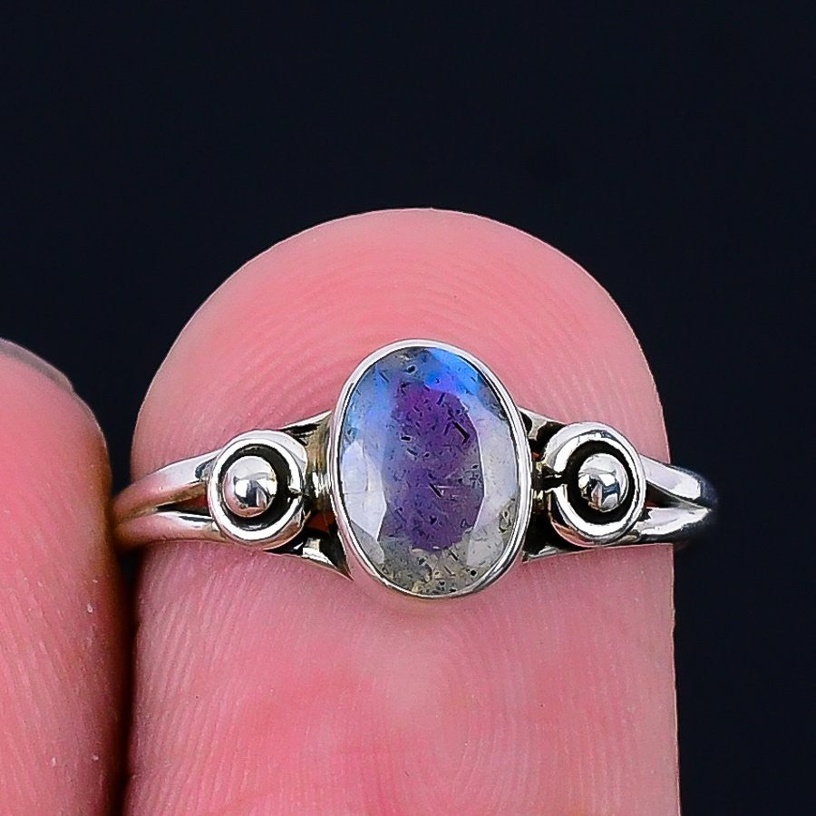 Natural Labradorite Birthday Statement Sister Friend Gift Ring 925 Silver US 7