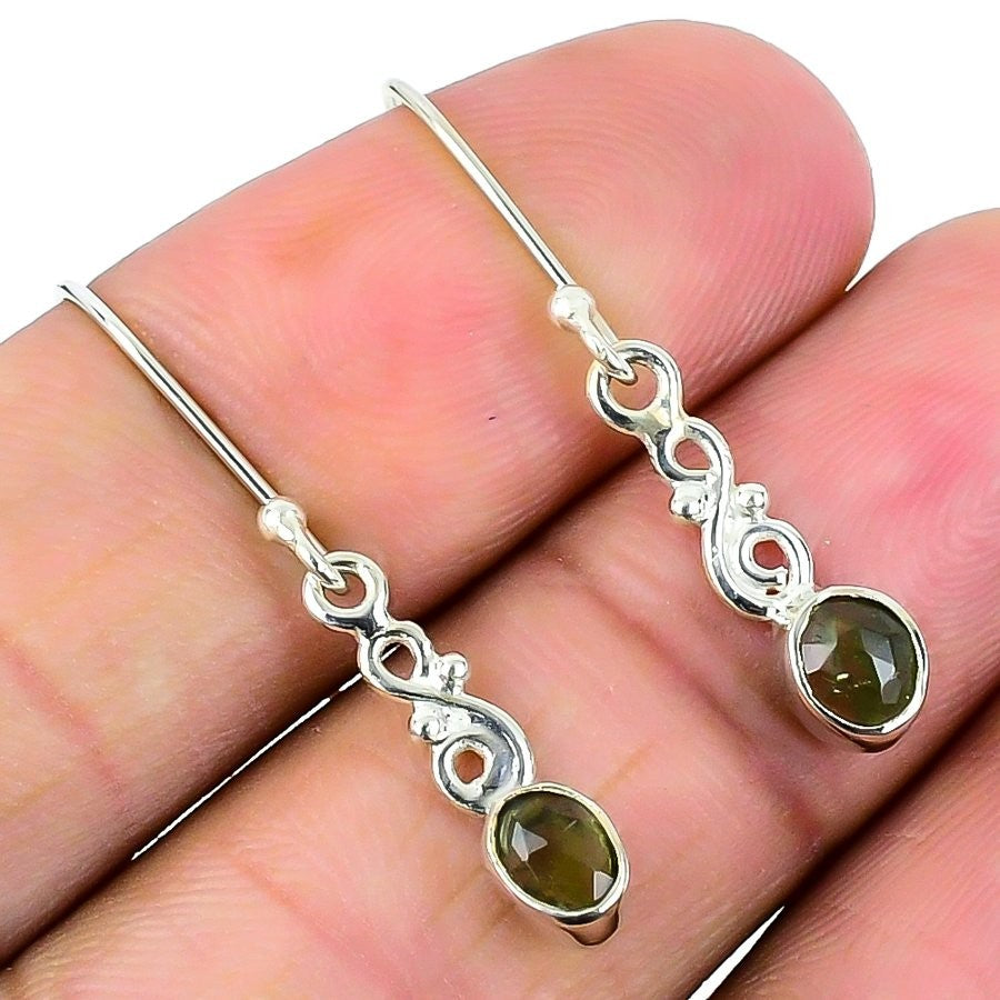 Natural Green Tourmaline Solid Sterling Silver Dangle Wedding Earrings Jewelry