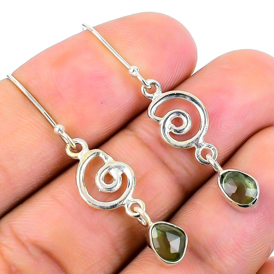 Green Tourmaline Gemstone Artisan Wife Dangle Drop Earrings 925 Sterling Silver