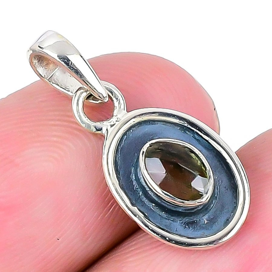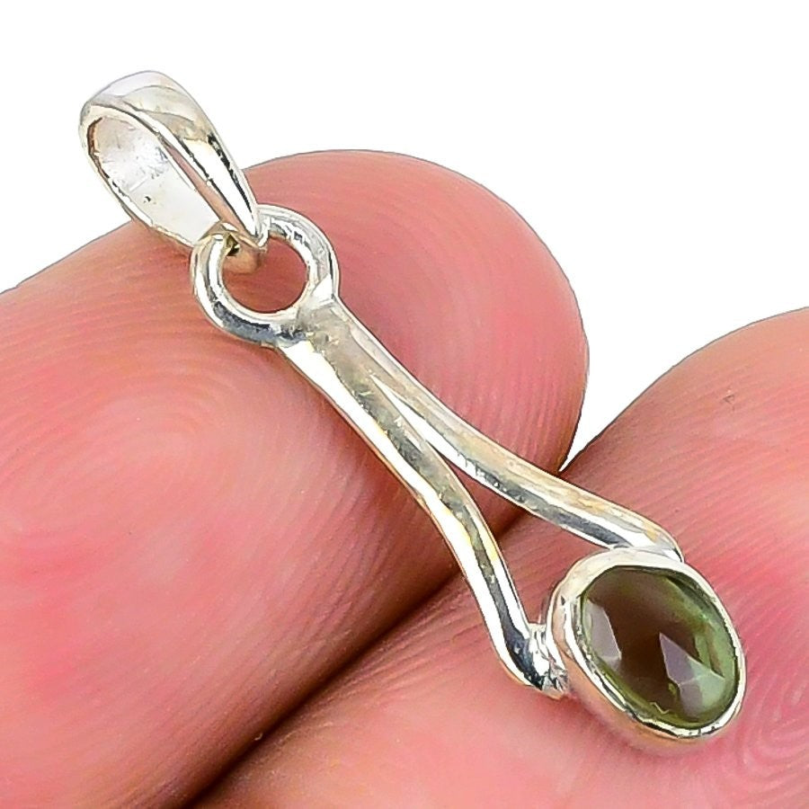 Green Tourmaline Stone Sterling Silver Ethnic Art Deco Heart Chakra Boho Pendant