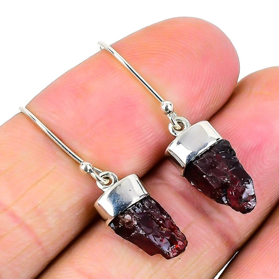 Garnet Rough Stone New Engagement Unique Dangle Mother Earrings Sterling Silver