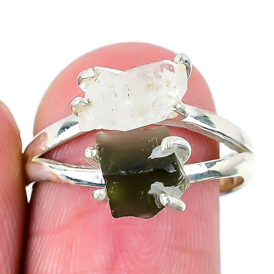 Herkimer Daimond Gemstone Sterling Silver Cluster Boho New Ring Jewelry Size 6.5