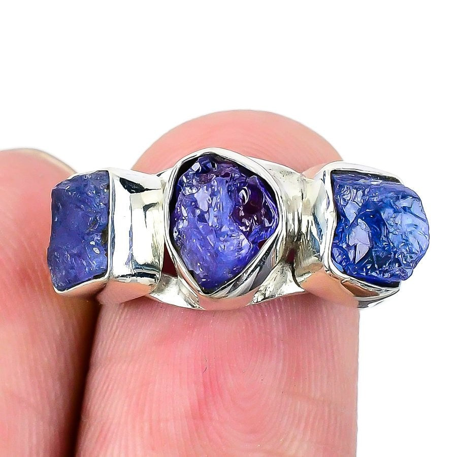 Tanzanite Rough Gemstone Solid Sterling Silver Wife Statement Boho Ring Size 6.5
