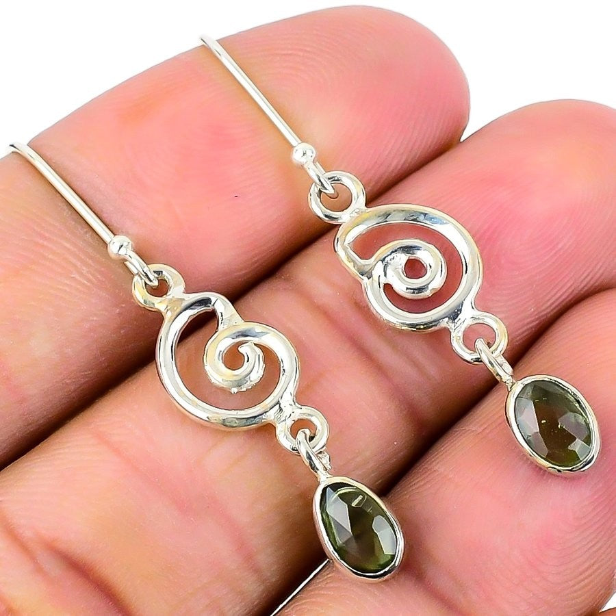 Green Amethyst Stone Solid Sterling Silver Elegant Boho Dangle Earrings Jewelry