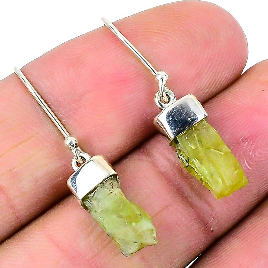 Green Kyanite Stone 925 Silver Hook Dangle Throat Chakra Wife Earrings Jewelry