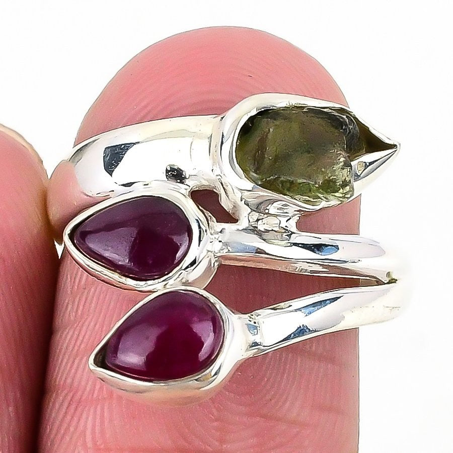 Natural Kashmir Red Ruby Statement Sister Ring Jewelry Sterling Silver US 7.5