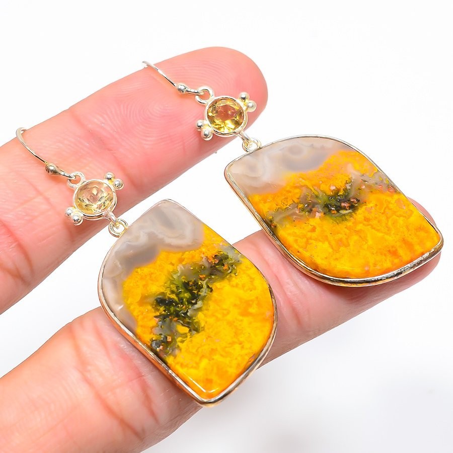 Bumblebee Jasper Gemstone 925�Solid�Silver Dangling Handmade Boho Wife Earrings