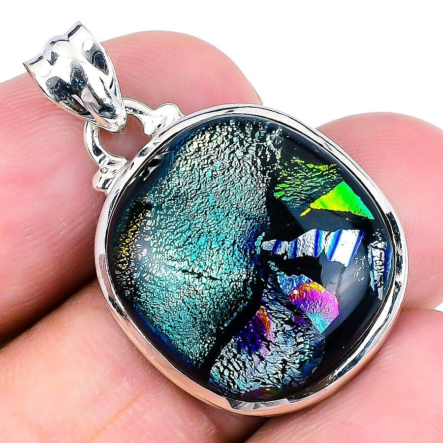 Natural Dichoric Glass Wedding Anniversary Boho Pendant Jewelry Sterling Silver