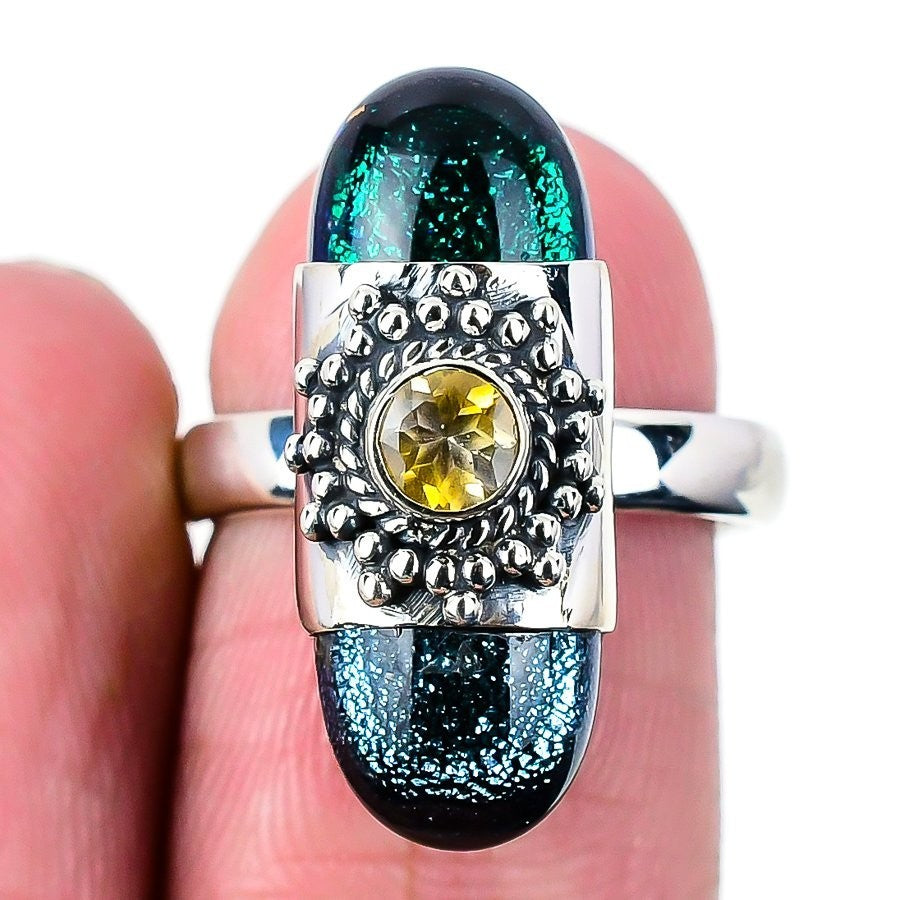 Friendship Day Deal Dichroic Glass Gemstone Solid Silver Statement Ring US 6.5