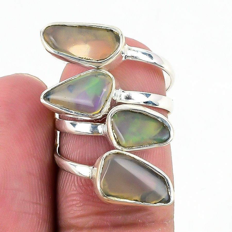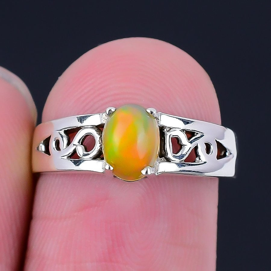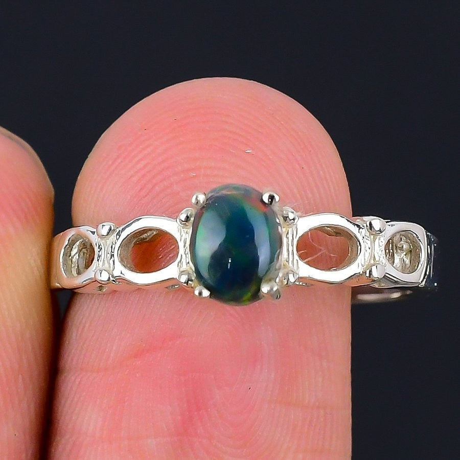 Natural Ethiopian Opal Sterling Silver Wedding Statement Daughter Ring Size 6