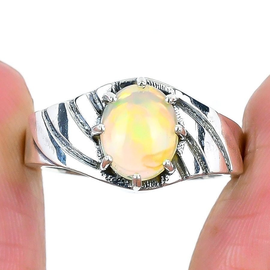 Ethiopian Opal Gemstone Solid Sterling Silver Statement Elegant Trendy Ring US 9