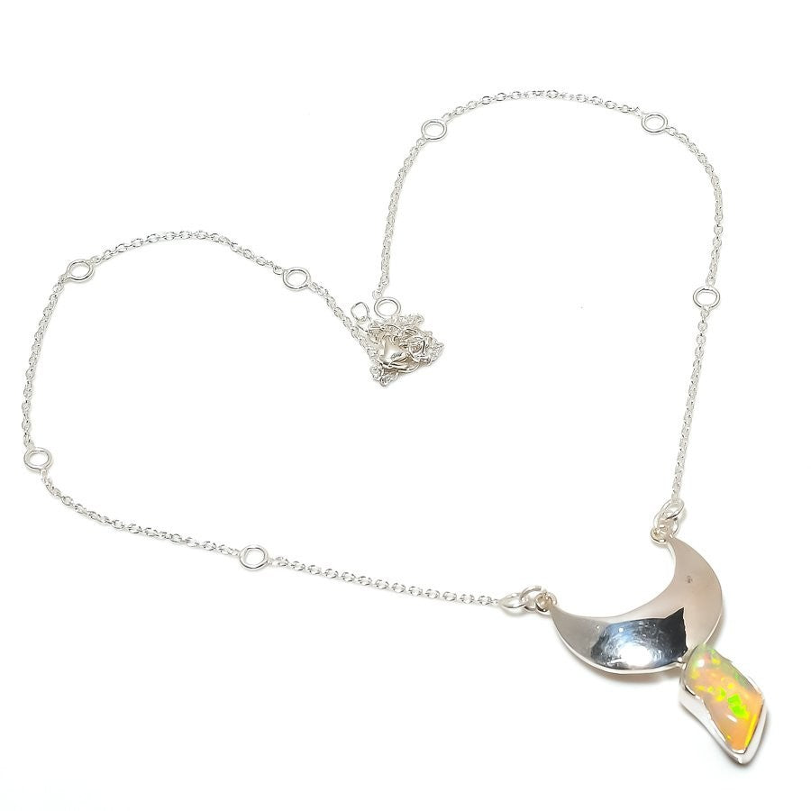 Ethiopian Opal Gemstone Sterling Silver Handmade Wife Chain Engagement Necklace