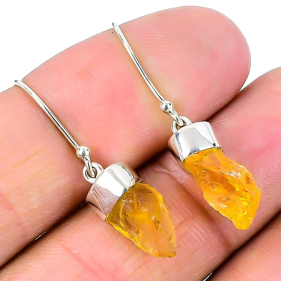 November Birth Citrine Stone Dangling Engagement New Earrings Jewelry 925 Silver