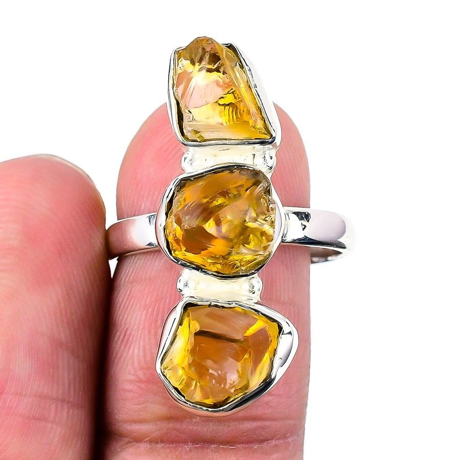 Natural Citrine 925 Sterling Silver Elegant Statement Sister Boho Ring Size 9.5