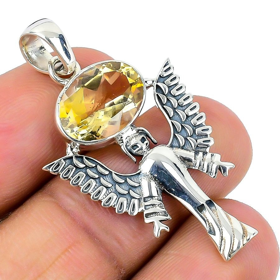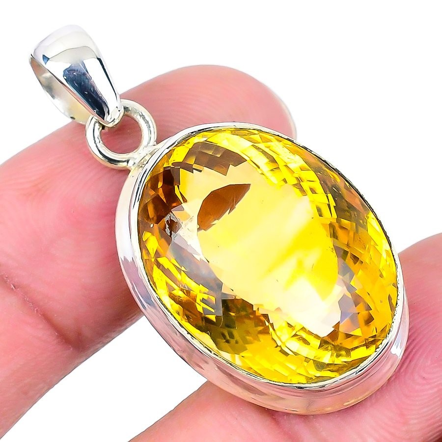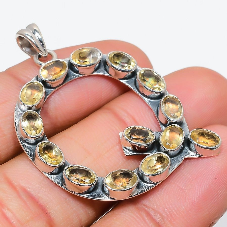 Friendship Day Sale Citrine Stone Solid Sterling Silver Artisan Birthday Pendant
