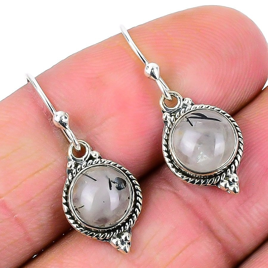 Sisters Day Deal Black Rutile Stone 925 Silver Hook Boho Dangle Mother Earrings