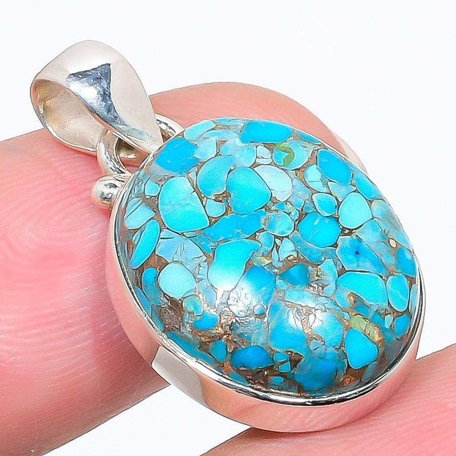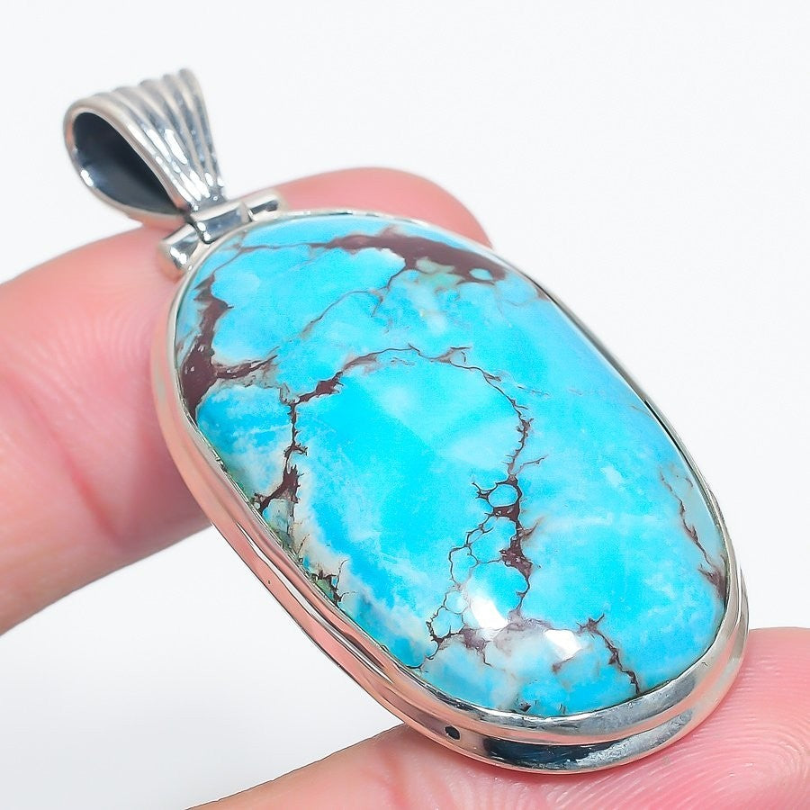 Natural Copper Blue Turquoise Throat Chakra Engagement Sister Pendant 925 Silver