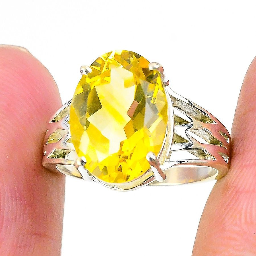 Citrine Gemstone Solid Silver Friendship Day New Statement Ring Jewelry Size 8.5