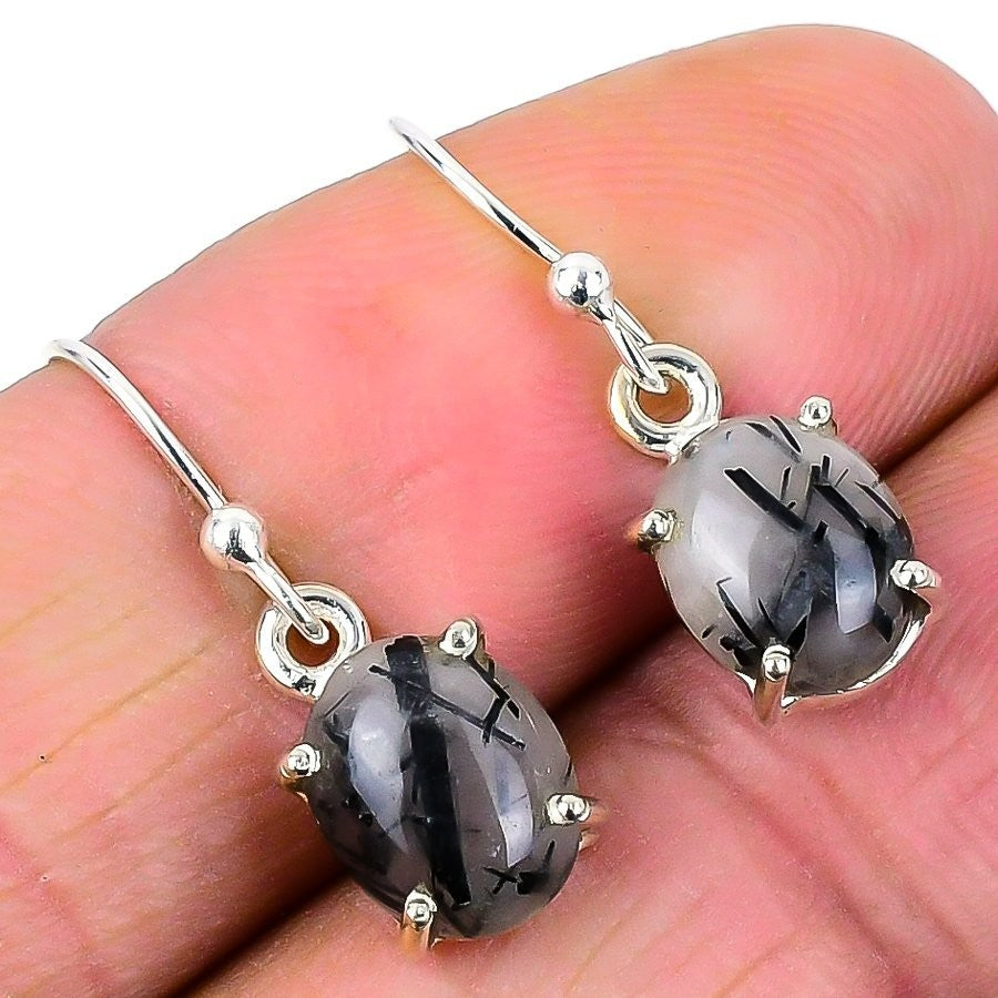 Natural Black Rutile Unique Dangling Handcrafted Earrings Solid Sterling Silver