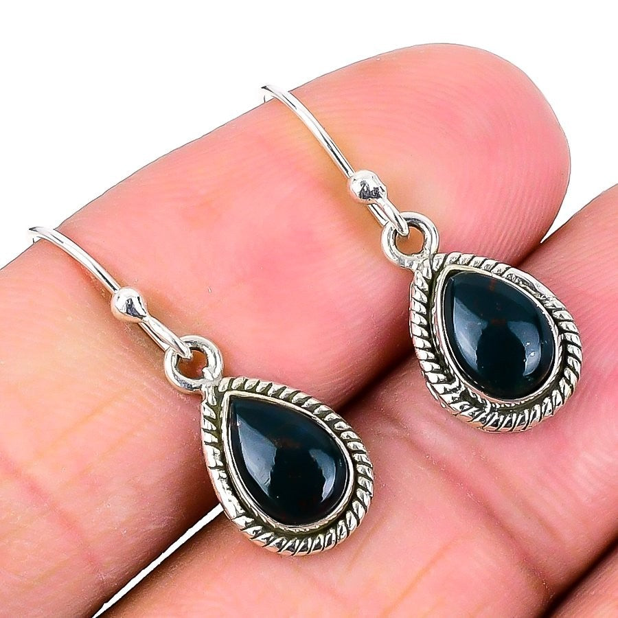 Root Chakra Bloodstone Gemstone Hook Drop Dangle Wife Earrings 925�Solid�Silver