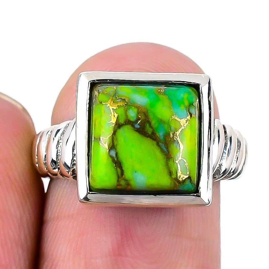 Copper Green Turquoise Gemstone Statement Wedding Ring Jewelry Size 6 925 Silver