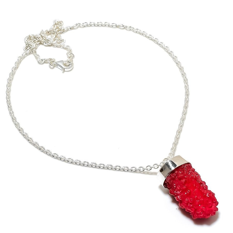 Sterling Silver Red Druzy Stone Boho Anniversary Chain Handcrafted New Necklace