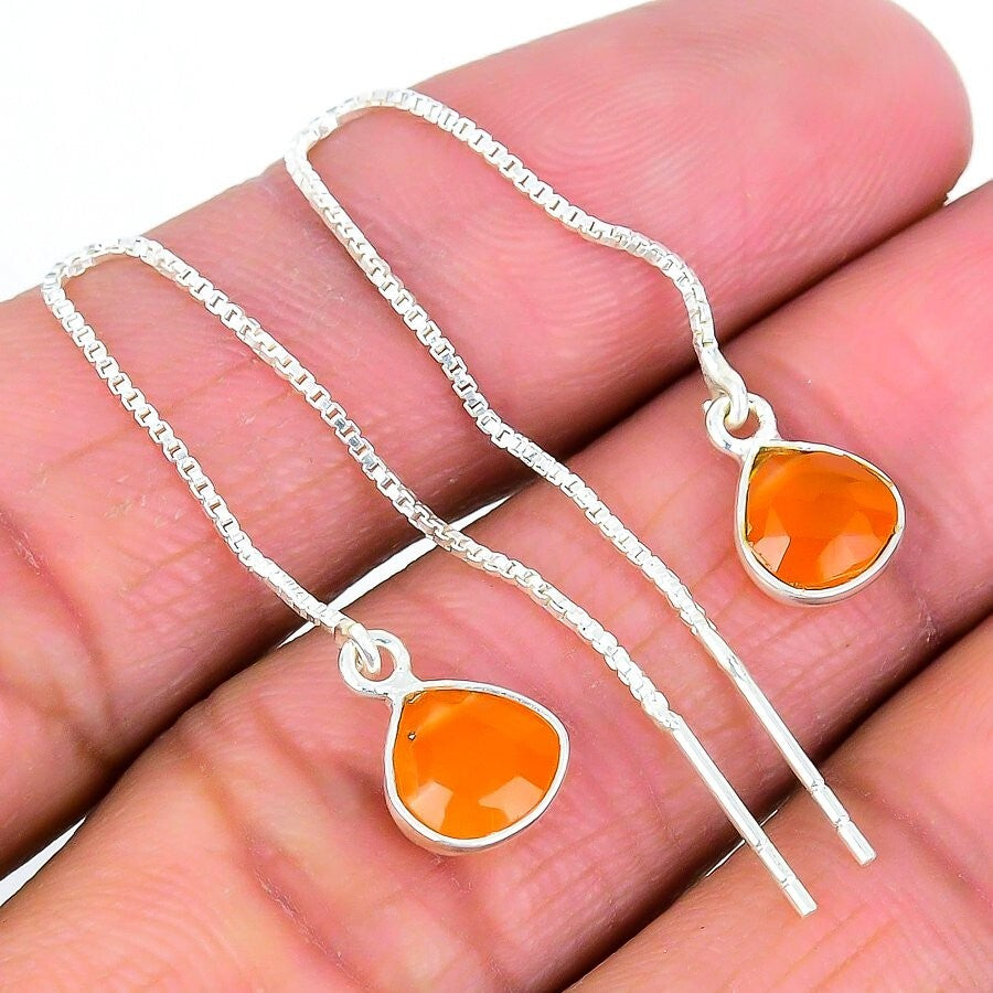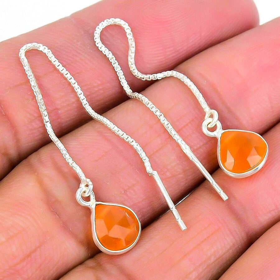 Natural Orange Carnelian Gemstone Drop/Dangle Earrings 925 Silver For Women