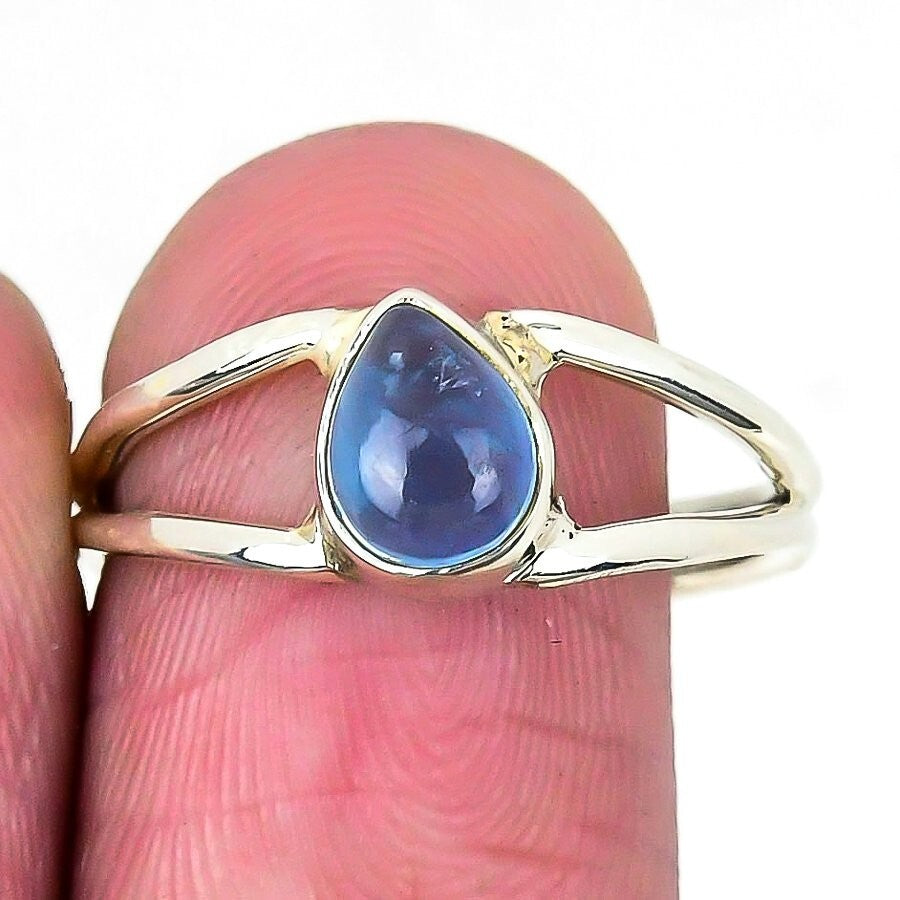 Natural Swiss Blue Topaz Gemstone 925 Silver Statement Ring Size 8.5 For Women