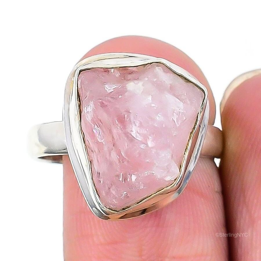 Natural Rose Quartz Gemstone Statement Ring Size 9 925 Sterling Silver For Women