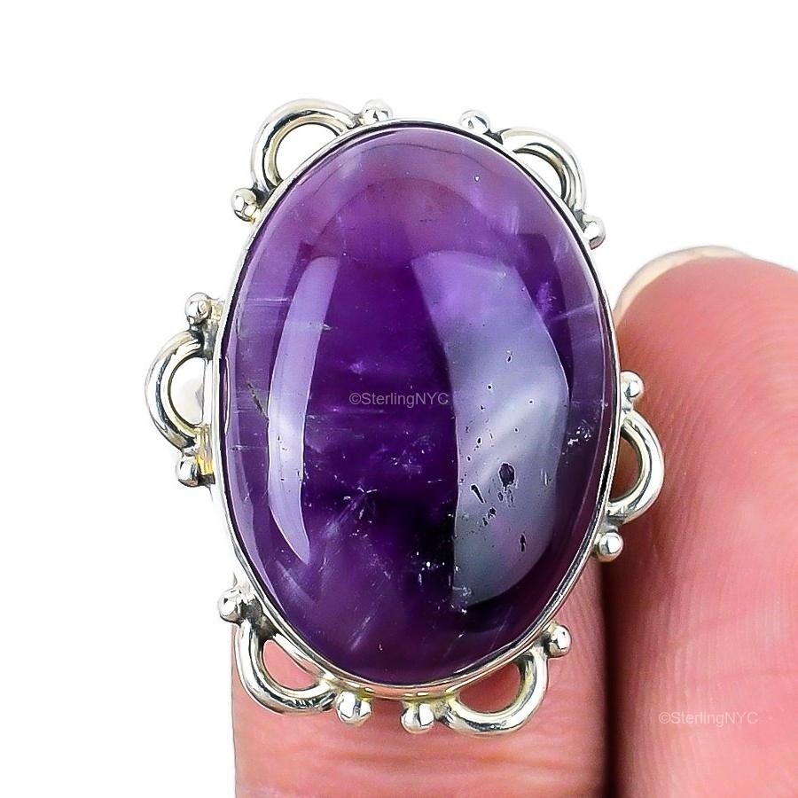Natural Sage Amethyst Gemstone Statement Ring Size 6.5 925 Sterling Silver