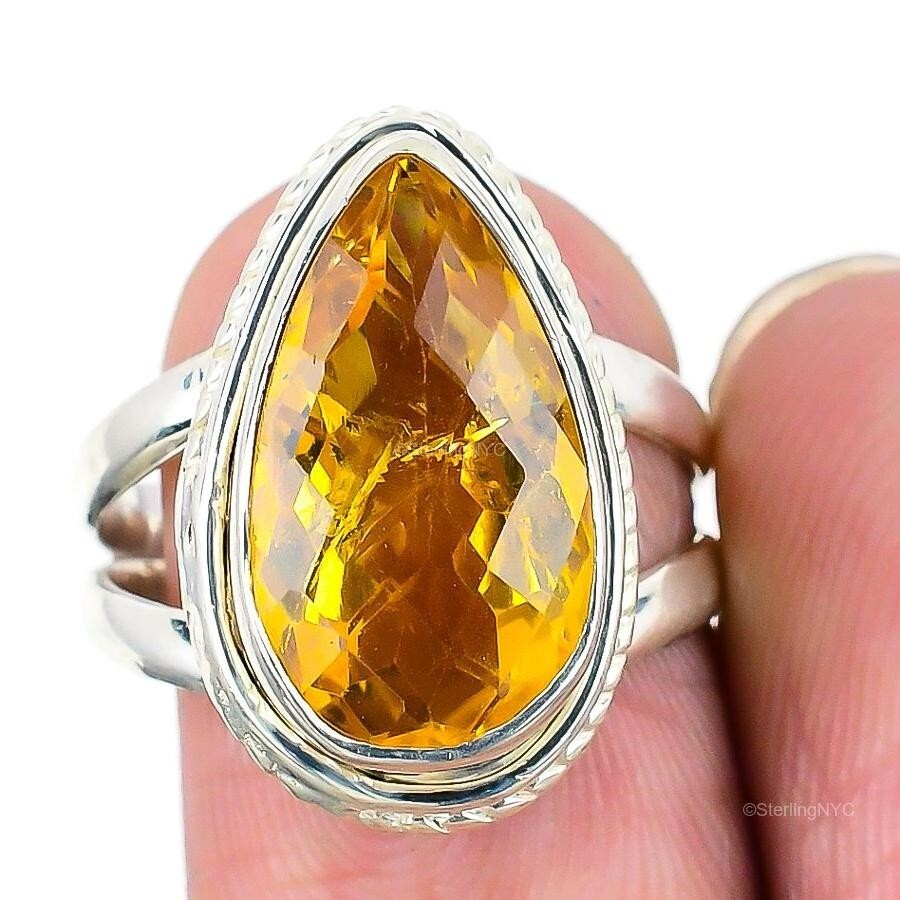 Natural Citrine Gemstone Statement Ring Size 7.5 925 Sterling Silver Jewelry
