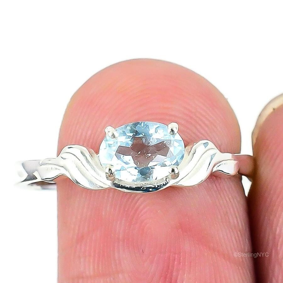 Gift For Her Natural Swiss Blue Topaz Statement Ring Size 6 925 Silver