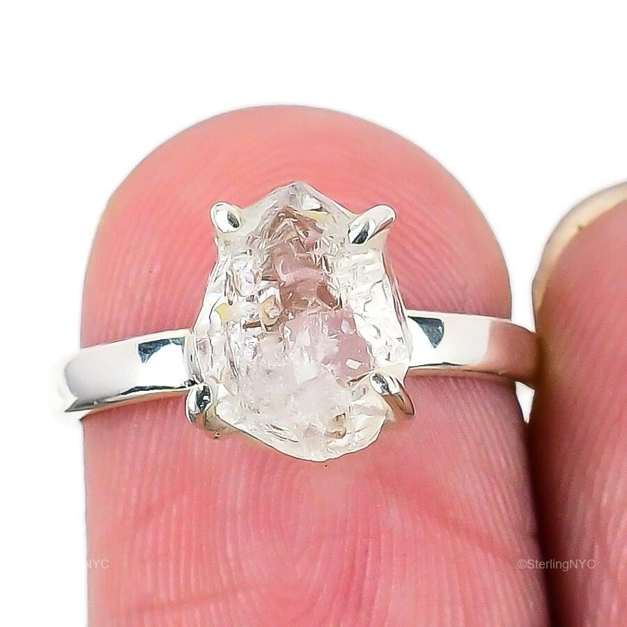 Natural Herkimer Daimond Gemstone 925 Silver Statement Ring Size 5.5 For Girls