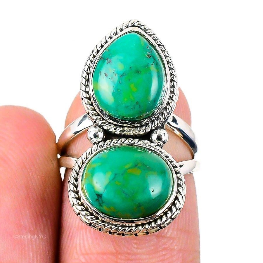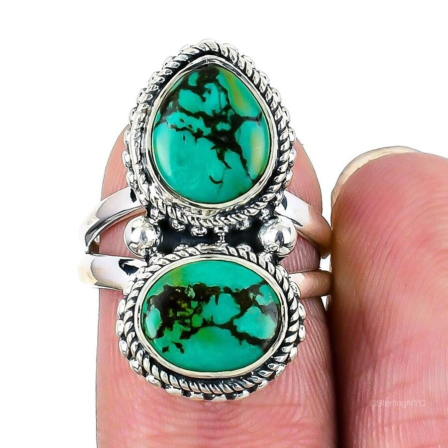 Natural Tibetan Turquoise Gemstone Statement Ring Size 6 925 Sterling Silver